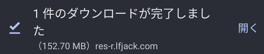 ①ダウンロードが完了したら「開く」を押す
