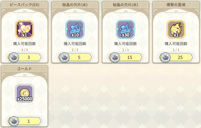 優先度 専用装備>霊魂>エピック装備>>秘晶の欠片(水)=召喚チケット【水の契約召喚】