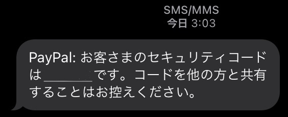 携帯のSMSに送られてきた6桁のコードを打ち込む