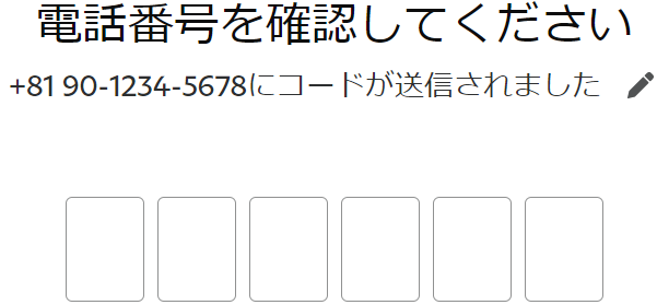 携帯のSMSに送られてきた6桁のコードを打ち込む