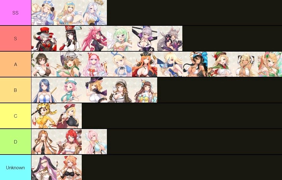 ティア表の見方:完凸したキャラの戦闘力が高いのがS、一番低いのがD